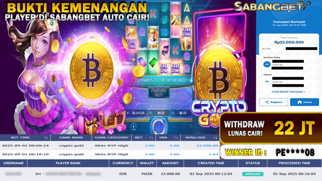 BUKTI KEMENANGAN 01 SEPTEMBER 2025 DI GAME crypto gold WD 22 JUTA