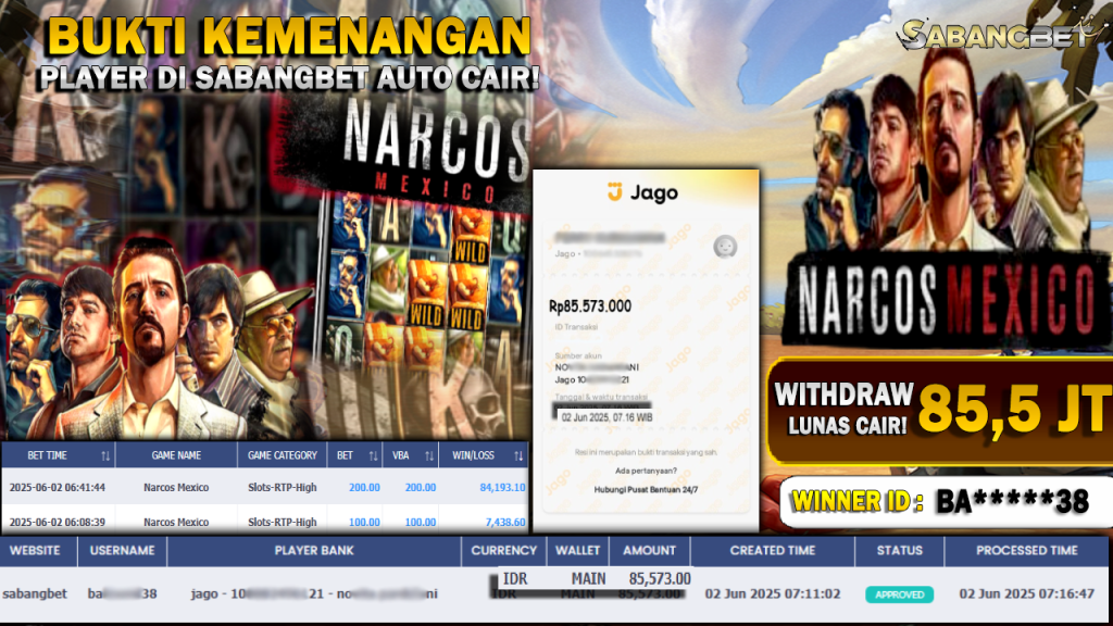 BUKTI KEMENANGAN 02 JUNI 2025 DI GAME NARCOS MEXICO WD 85,5 JUTA