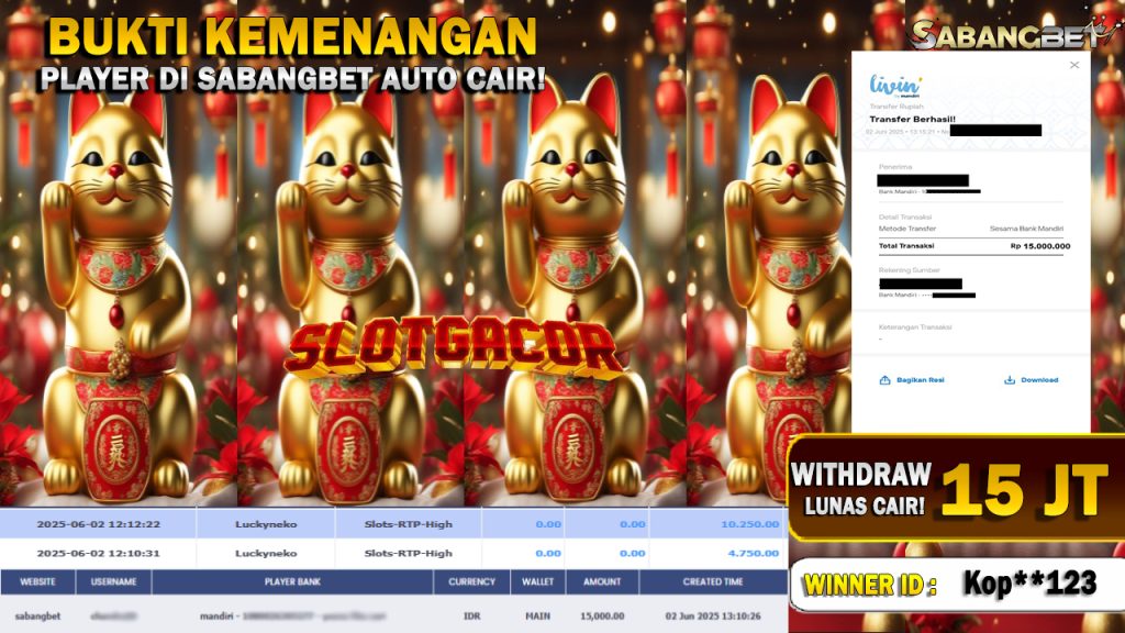 BUKTI KEMENANGAN 02 JUNI 2025 DI Lucky Neko WD 15 JUTA