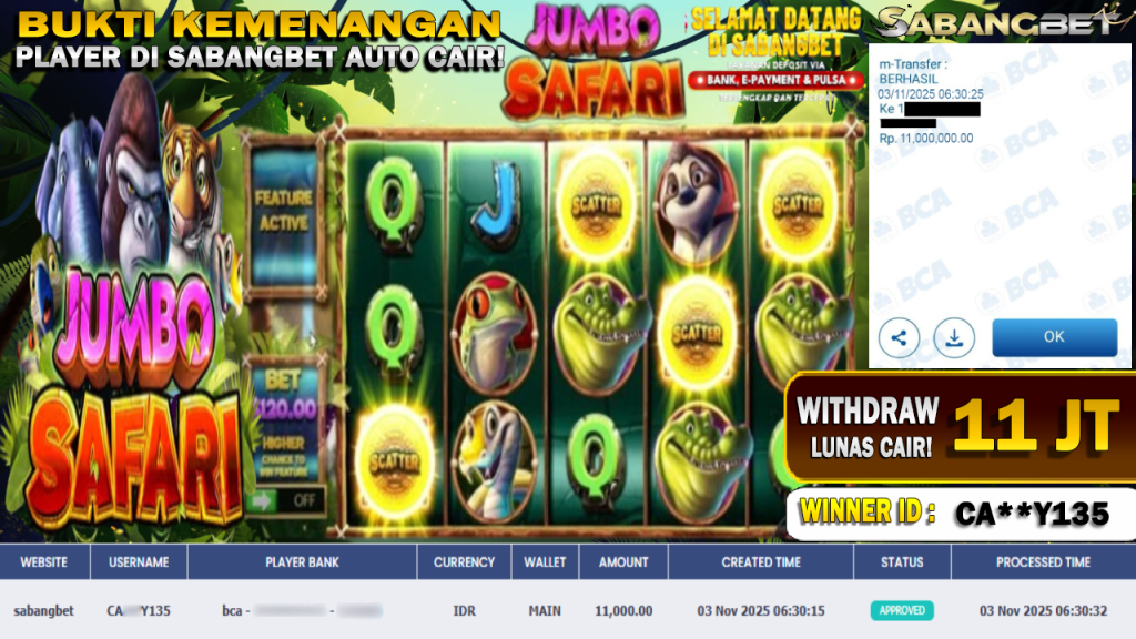 BUKTI KEMENANGAN 03 NOVEMBER 2025 DI GAME JUMBO SAFARI WD 11 JUTA