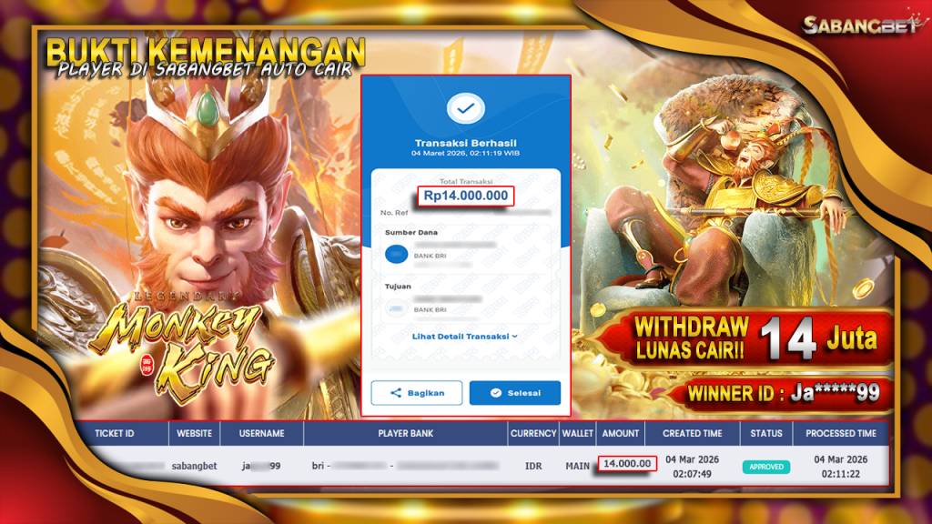 BUKTI KEMENANGAN 04 MARET 2026 DI GAME Legendary Monkey King WD 14 JUTA