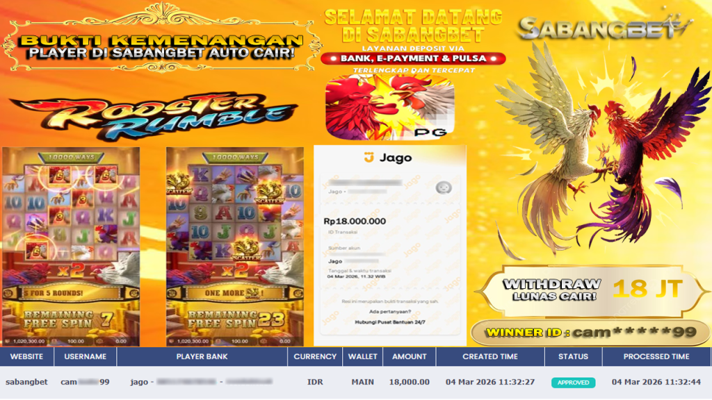 BUKTI KEMENANGAN 04 MARET 2026 DI GAME ROOSTER RUMBLE WD 18 JUTA