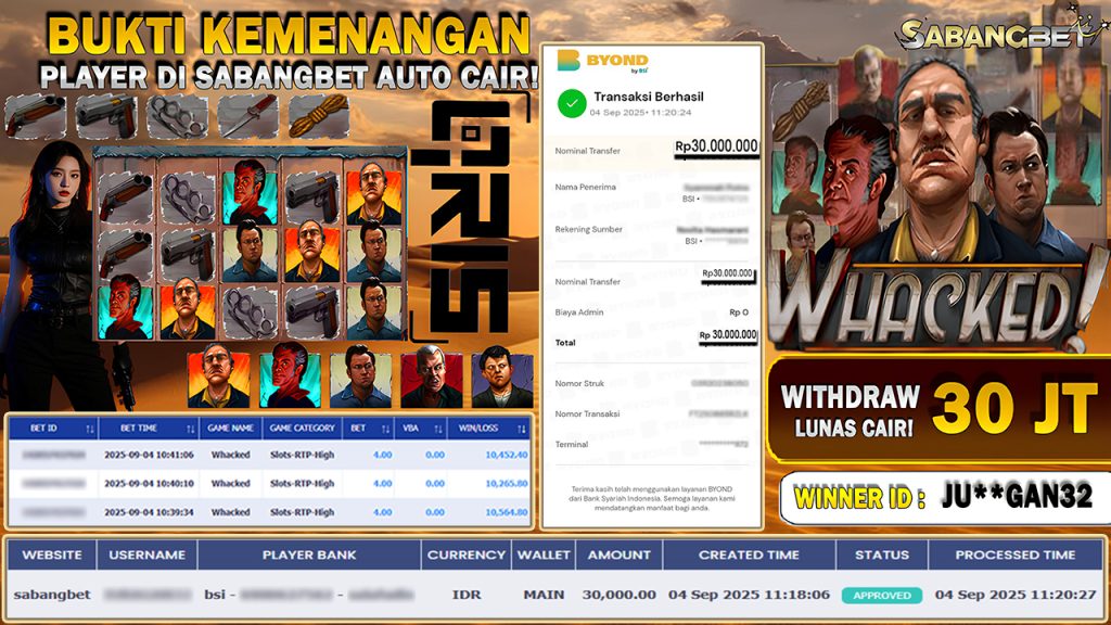 BUKTI KEMENANGAN 04 SEPTEMBER 2025 DI GAME WHACKED NOLIMIT CITY WD 30 JUTA