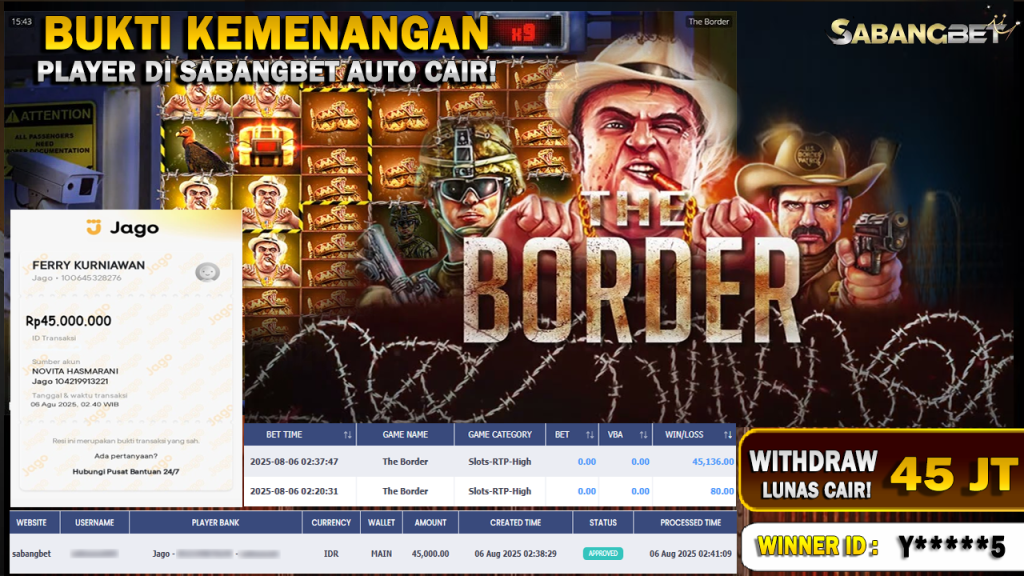 BUKTI KEMENANGAN 06 AGUSTUS 2025 DI GAME THE BORDER WD 45 JUTA