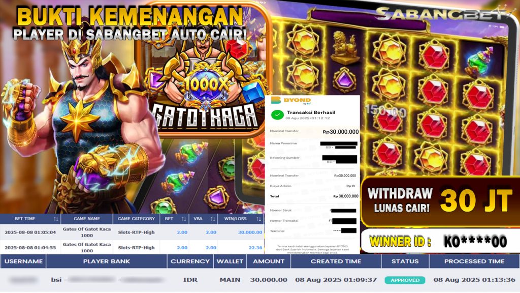 BUKTI KEMENANGAN 08 AGUSTUS 2025 DI GAME gates of gatot kaca 1000 WD 30 JUTA