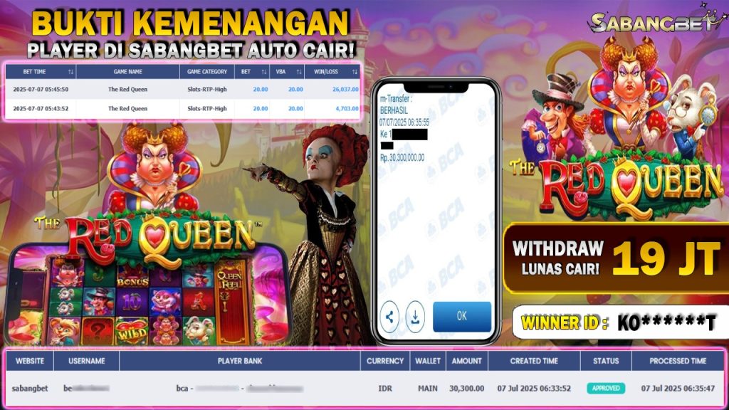 BUKTI KEMENANGAN 07 JULY 2025 DI GAME THE RED QUEEN WD 19 JUTA