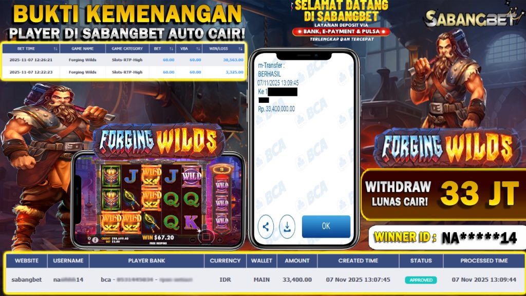 BUKTI KEMENANGAN 07 NOVEMBER 2025 DI GAME FORGING WILDS WD 33 JUTA