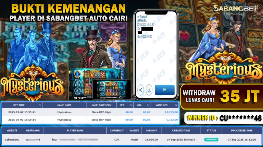 BUKTI KEMENANGAN 07 SEPTEMBER 2025 DI GAME MYSTERIOUS WD 35 JUTA
