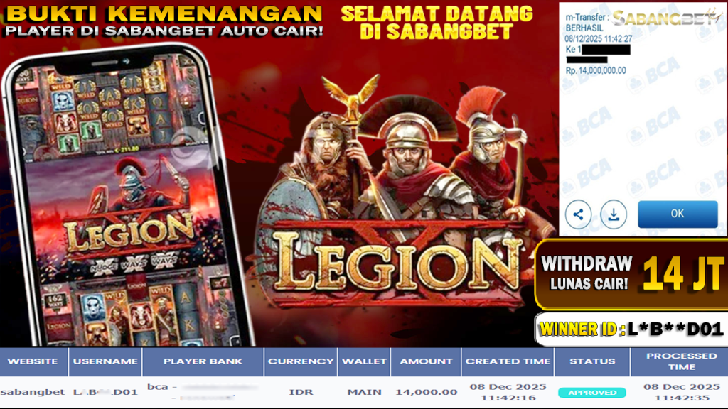 BUKTI KEMENANGAN 08 DESEMBER 2025 DI GAME LEGION WD 14 JUTA