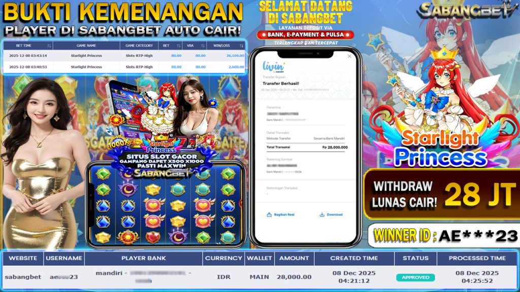 BUKTI KEMENANGAN 08 DESEMBER 2025 DI GAME STARLIGHT PRINCESS WD 28 JUTA