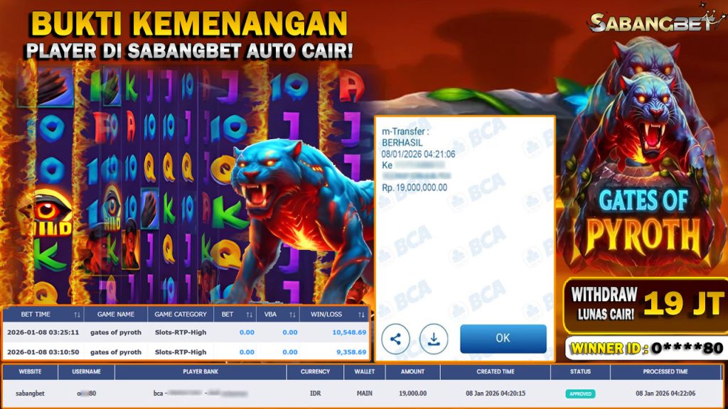 BUKTI KEMENANGAN 08 JANUARI 2026 DI GAME GATES OF PYROTH WD 19 JUTA
