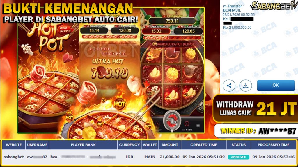 BUKTI KEMENANGAN 09 JANUARI 2026 DI GAME HOTPOT WD 21 JUTA