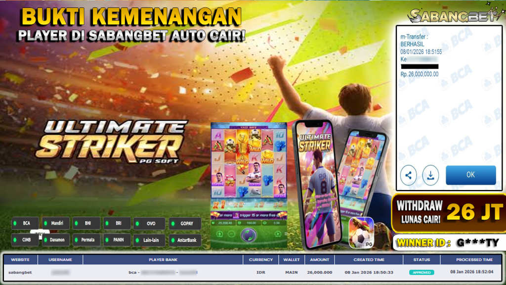 BUKTI KEMENANGAN 08 JANUARI 2026 DI GAME UlTIMATE STRIKER WD 26 JUTA