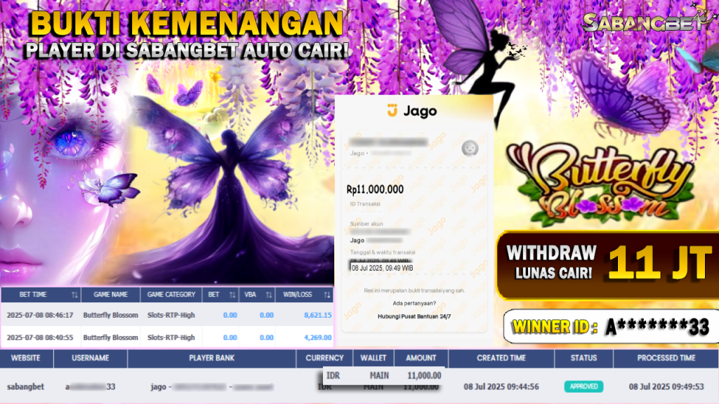 BUKTI KEMENANGAN 08 JULY 2025 DI GAME BUTTERFLY BLOSSOM WD 11 JUTA