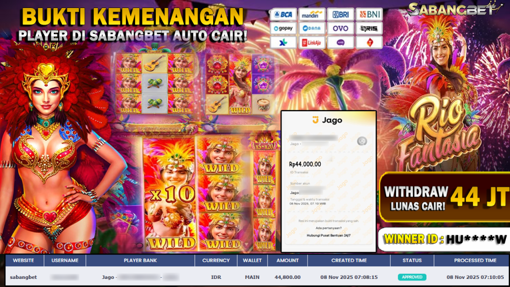 BUKTI KEMENANGAN 08 NOVEMBER 2025 DI GAME RIO FANTASIA ( POCKET GAME SOFT ) WD 44 JUTA
