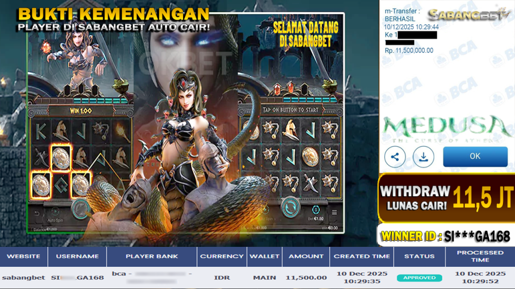 BUKTI KEMENANGAN 10 DESEMBER 2025 DI GAME MEDUSA WD 11,5 JUTA