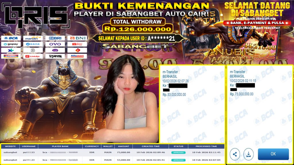 BUKTI KEMENANGAN 10 FEBRUARI 2026 DI GAME ANUBIS WRATH WD 126 JUTA