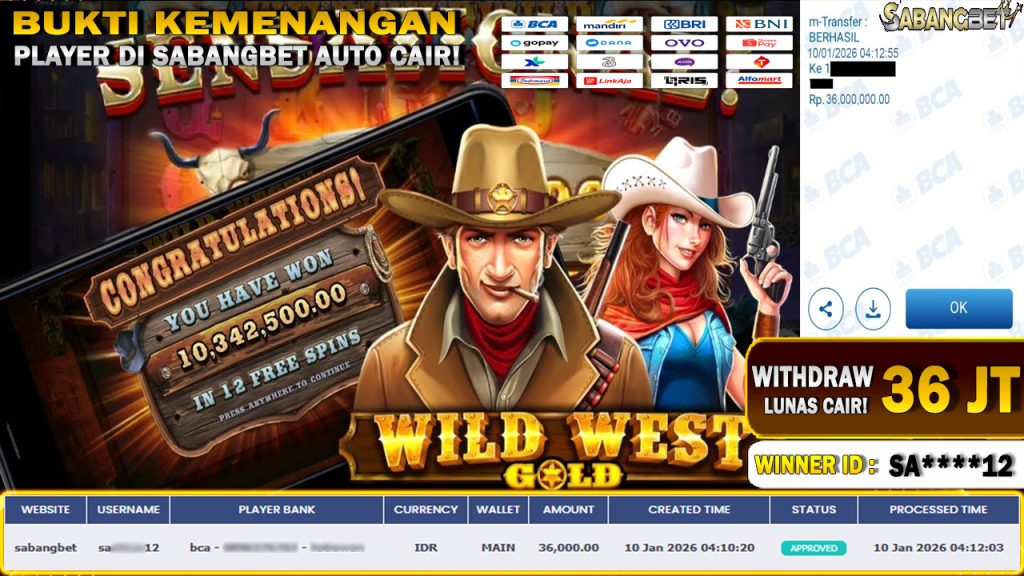 BUKTI KEMENANGAN 10 JANUARI 2026 DI GAME WILD WEST GOLD WD 36 JUTA