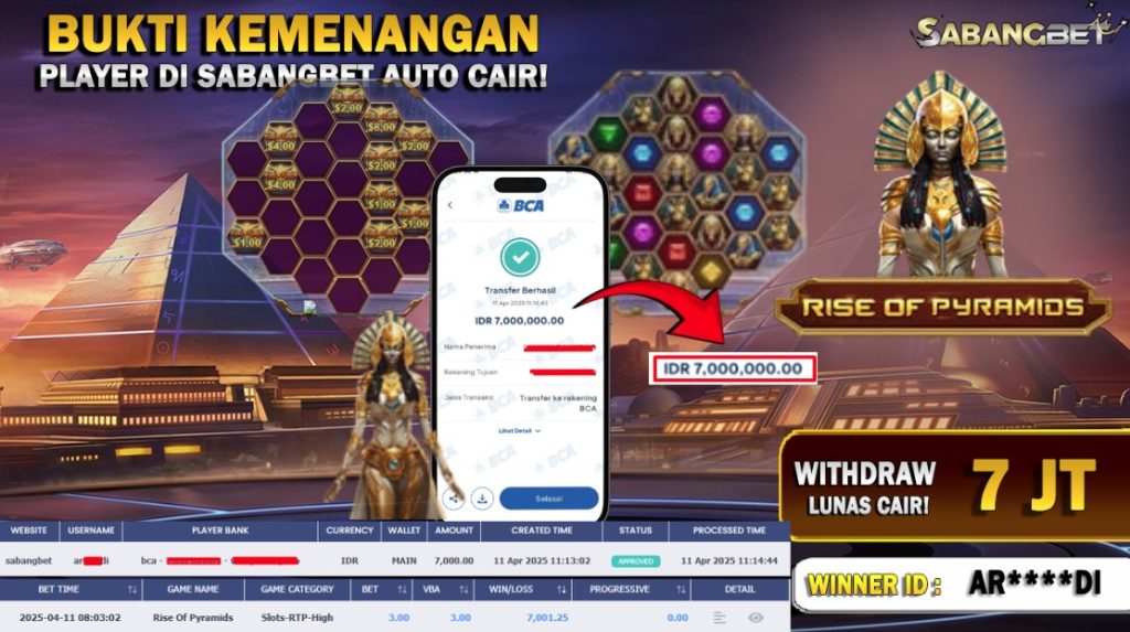 BUKTI KEMENANGAN 11 APRIL 2025 DI GAME RISE OF PYRAMIDS WD 7 JT