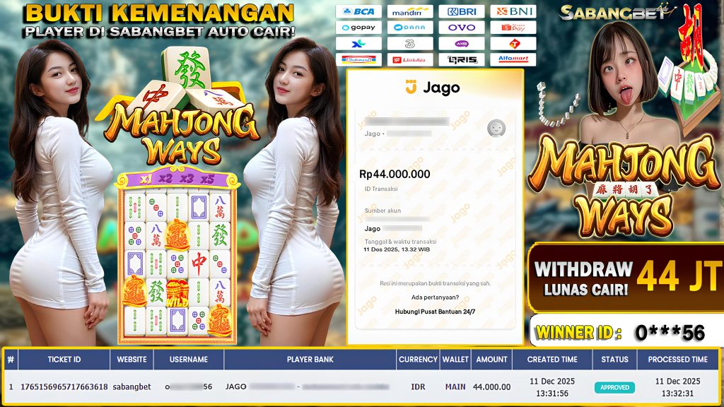BUKTI KEMENANGAN 11 DESEMBER 2025 DI GAME MAHJONG WAYS WD 44 JUTA