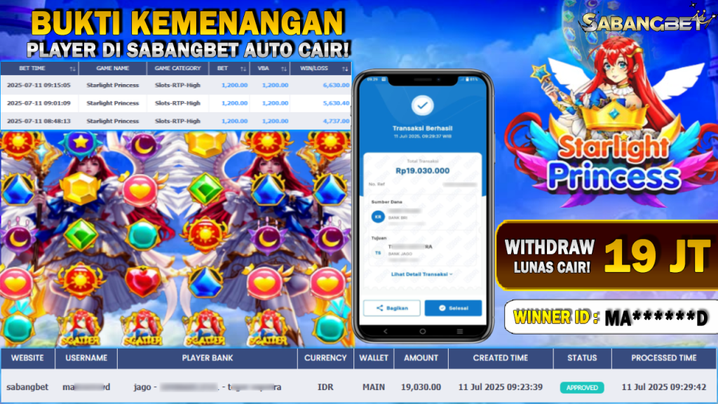 BUKTI KEMENANGAN 11 JULY 2025 DI GAME STARLIGHT PRINCESS WD 19 JUTA