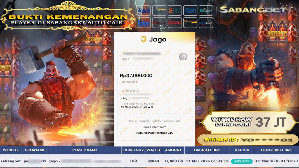 BUKTI KEMENANGAN 11 MARET 2026 DI GAME FORGE OF WEALTH WD 37 JUTA