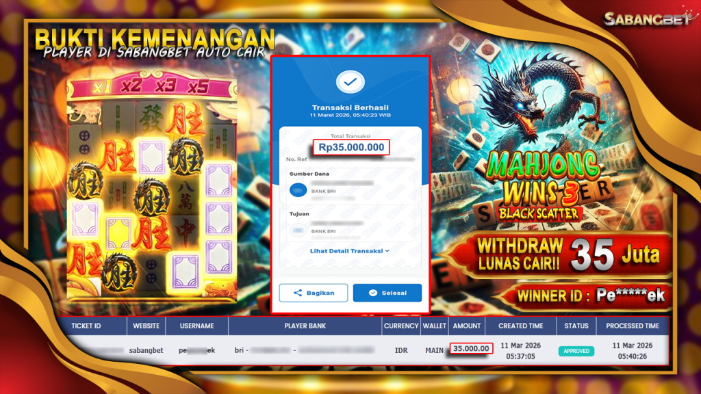 BUKTI KEMENANGAN 11 MARET 2026 DI GAME Mahjong Ways 3 Black Scatter WD 35 JUTA