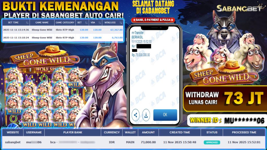 BUKTI KEMENANGAN 11 NOVEMBER 2025 DI GAME SHEEP GONE WILD WD 73 JUTA