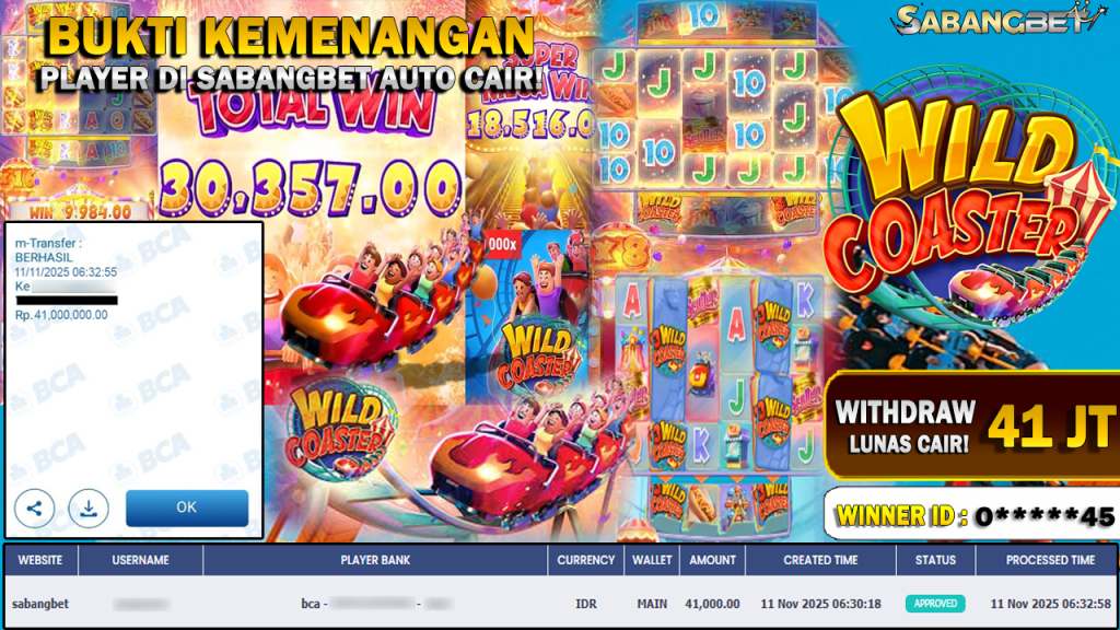 BUKTI KEMENANGAN 11 NOVEMBER 2025 DI GAME WILD COASTE (POCKET GAME SOFT ) WD 41 JUTA