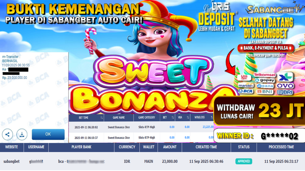 BUKTI KEMENANGAN 11 SEPTEMBER 2025 DI SWEET BONANZA DICE™ WD 23 JUTA