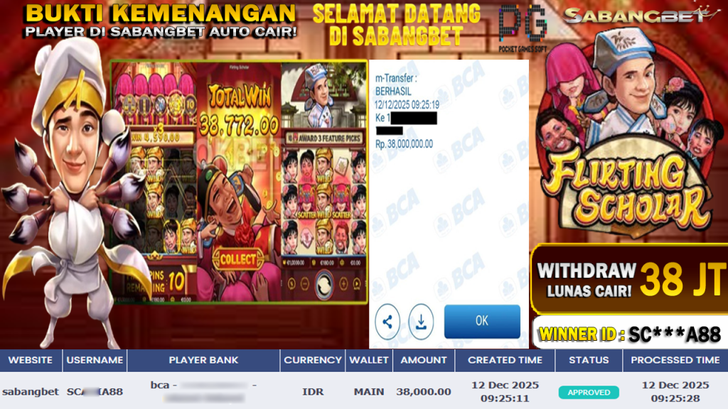 BUKTI KEMENANGAN 12 DESEMBER 2025 DI GAME FLIRTING SCHOLAR WD 38 JUTA