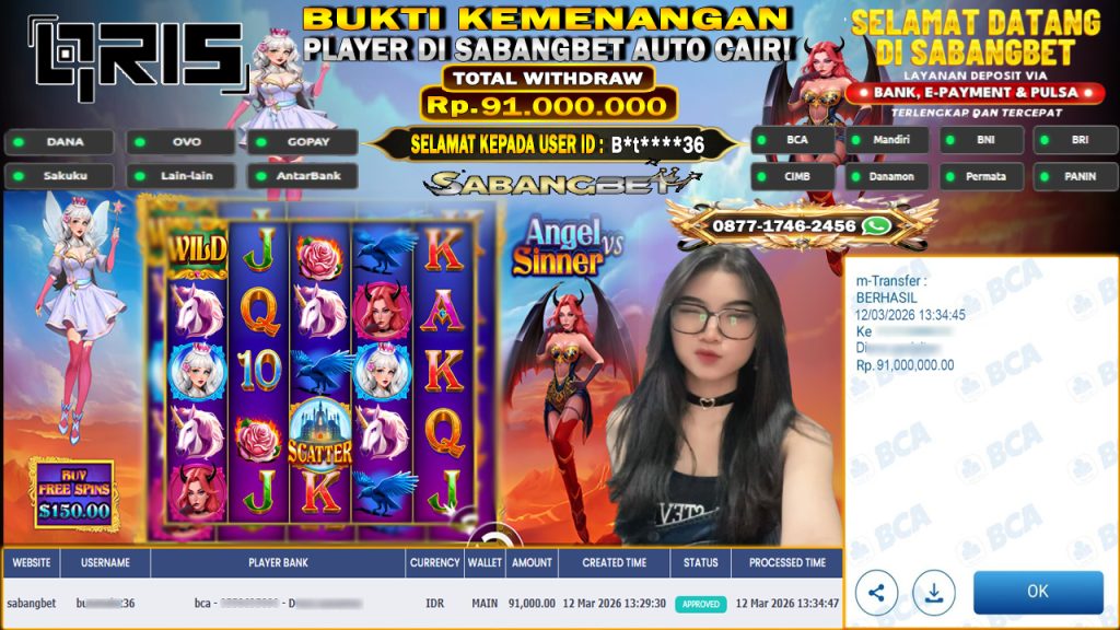 BUKTI KEMENANGAN 12 MARET 2026 DI GAME ANGEL VS SINNER WD 91 JUTA