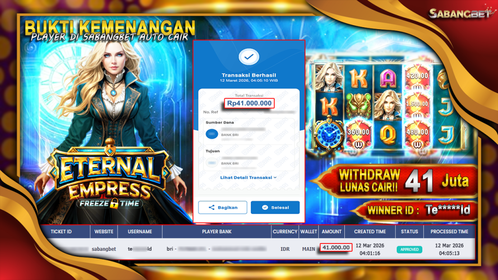 BUKTI KEMENANGAN 12 MARET 2026 DI GAME Eternal Empress Freeze Time WD 41 JUTA