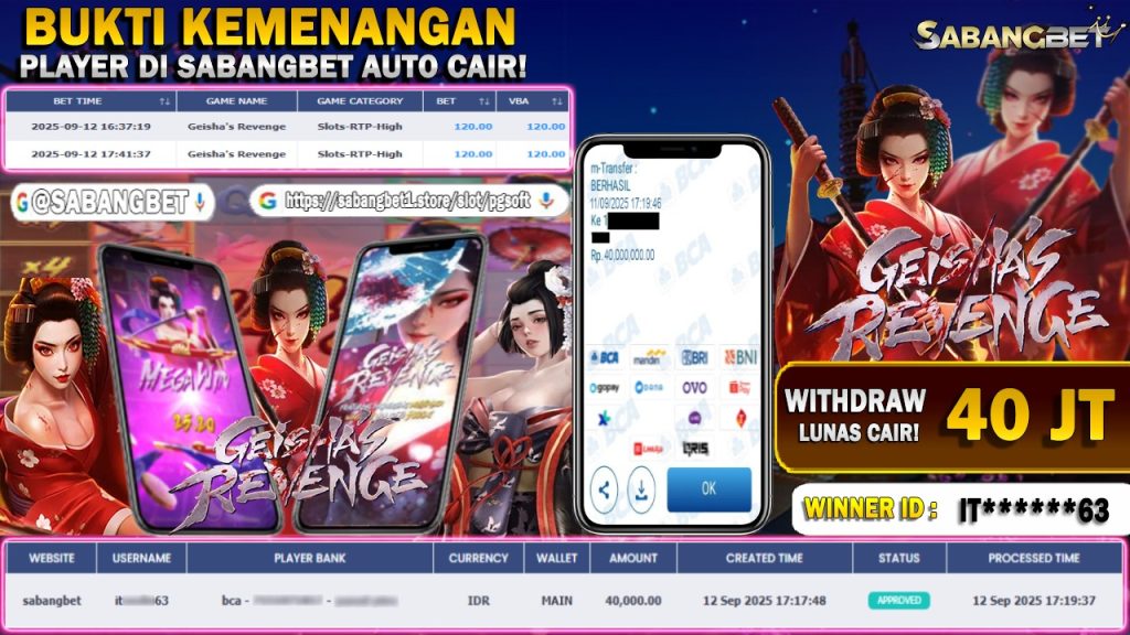 BUKTI KEMENANGAN 12 SEPTEMBER 2025 DI GAME GEISHA’S REVENGE WD 40 JUTA