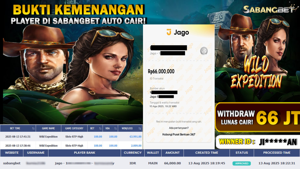 BUKTI KEMENANGAN 13 AGUSTUS 2025 DI GAME WILD EXPEDITION WD 66 JUTA