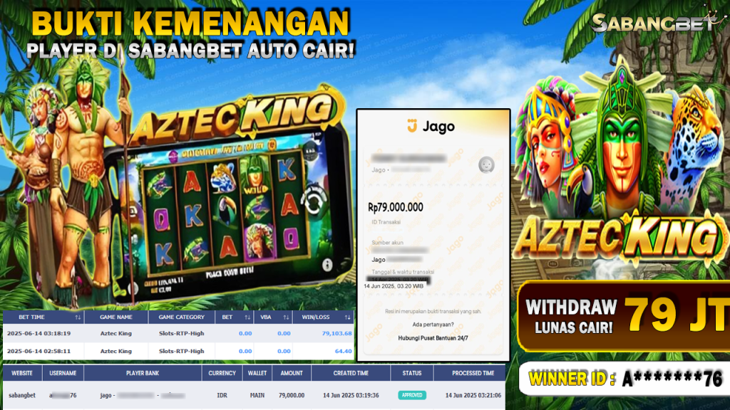 BUKTI KEMENANGAN 14 JUNI 2025 DI GAME AZTEC KING WD 79 JUTA