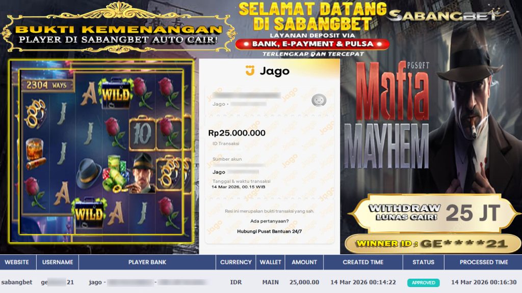 BUKTI KEMENANGAN 14 MARET 2026 DI GAME MAFIA MAYHEM WD 25 JUTA