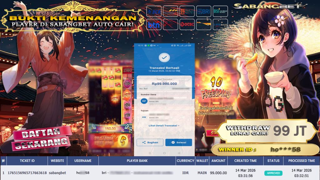 Agen Judi SABANGBET merupakan Agen Judi Slot Gacor dan slot online yang membayar semua kemenangan member hingga lunas. Setiap pembayaran pada situs kami dilakukan dengan cara transfer ke rekening tujuan yang sudah di daftarkan pada situs slot online kami, Pembayaran hanya dapat di proses jika rekening yang di daftarkan telah valid dan dapat di transfer. Semua kemenangan member yang mendapatkan hadiah jackpot terbesar akan kami posting agar semua pemain dapat melihat bandar situs terpercaya SABANGBET ini membayar semua kemenangan member hingga lunas. Setiap postingan yang kami posting akan kami lakukan sensor pada nomor rekening 4 digit dan nama rekening untuk menjaga privasi dan kerahasiaan member. Postingan Jackpot yang kami posting agar member atau pemain yang belum pernah bermain bisa melihat Agen Judi Bukan Kaleng Kaleng Seperti SABANGBET ini, Semua postingan jackpot yang kami posting dapat di lihat data keasliannya melalui nomor reff yang di tunjukan pada bank atau mbanking saat kita melakukan transfer.
