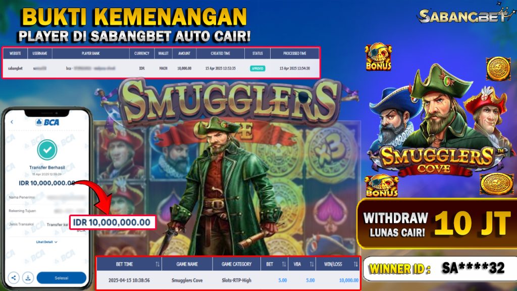 BUKTI KEMENANGAN 15 APRIL 2025 DI GAME SMUGGLERS COVE WD 10 JUTA