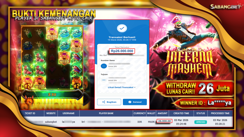 BUKTI KEMENANGAN 15 MARET 2026 DI GAME Inferno Mayhem WD 26 JUTA