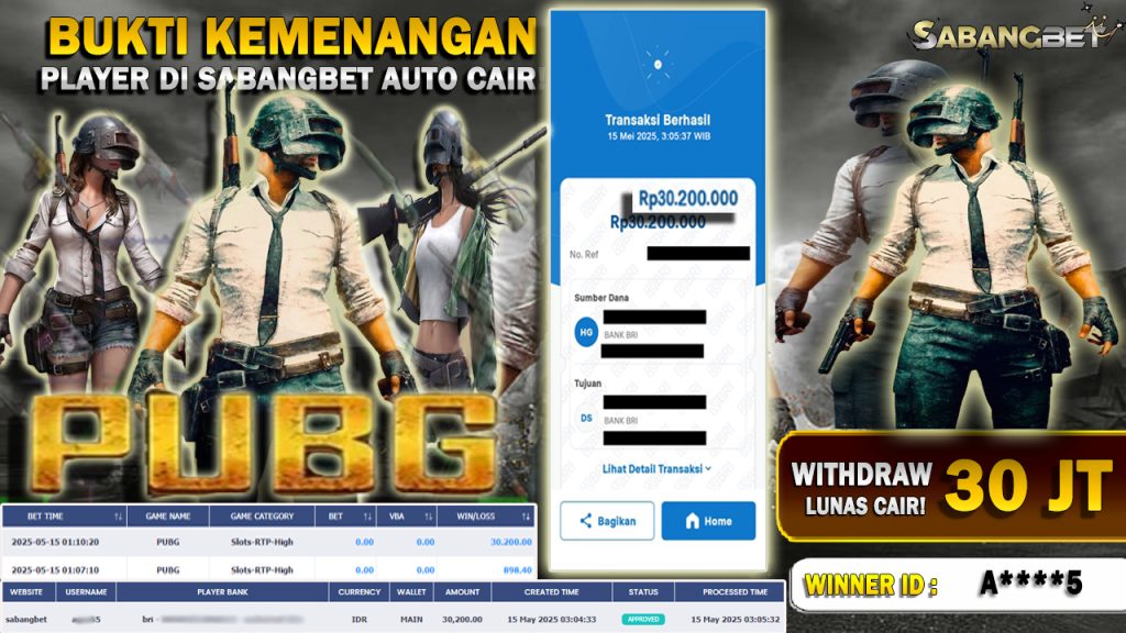 BUKTI KEMENANGAN 15 MEI 2025 DI GAME PUBG WD 30 JT