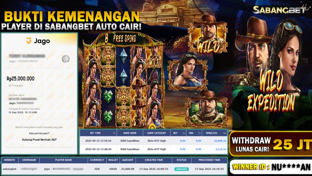 BUKTI KEMENANGAN 15 SEPTEMBER 2025 DI GAME WILD EXPEDITION WD 25 JUTA
