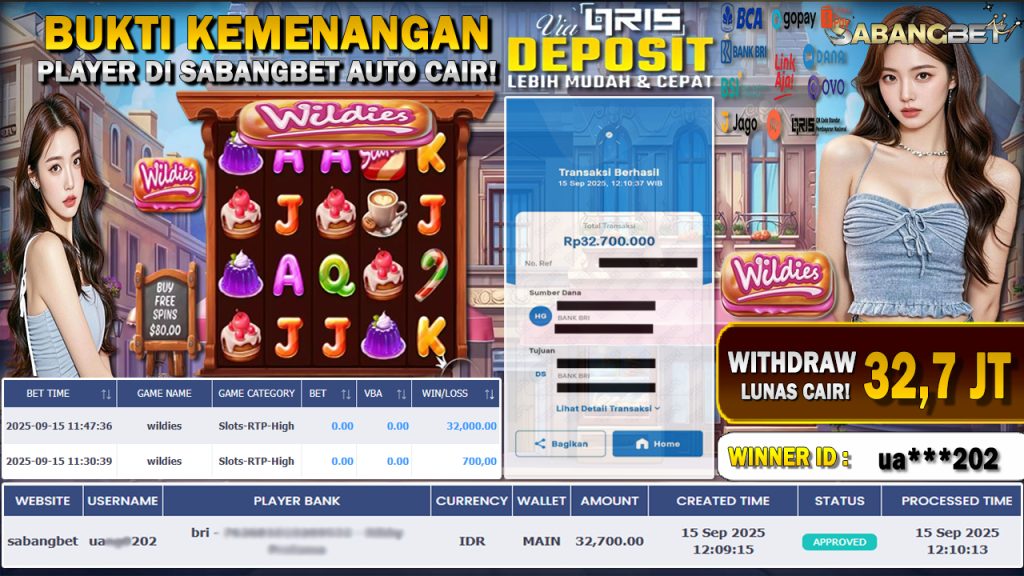 BUKTI KEMENANGAN 15 SEPTEMBER 2025 DI GAME WILDIES WD 32,7 JUTA