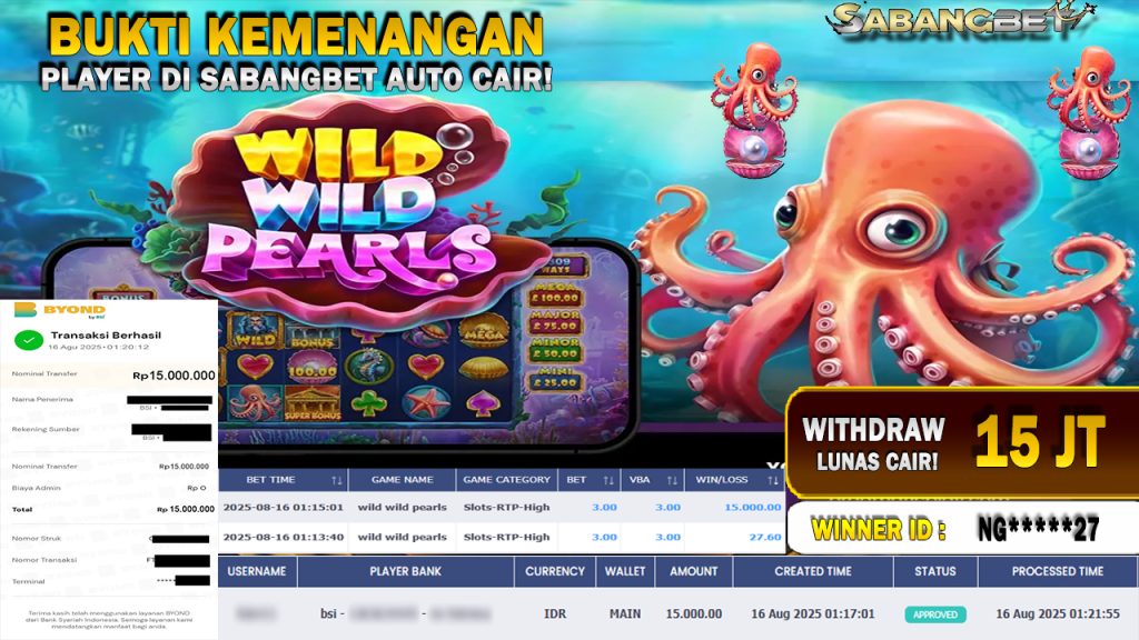 BUKTI KEMENANGAN 16 AGUSTUS 2025 DI GAME wild wild pearls WD 15 JUTA