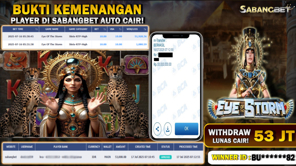 BUKTI KEMENANGAN 16 JULY 2025 DI GAME EYE OF THE STORM WD 53 JUTA