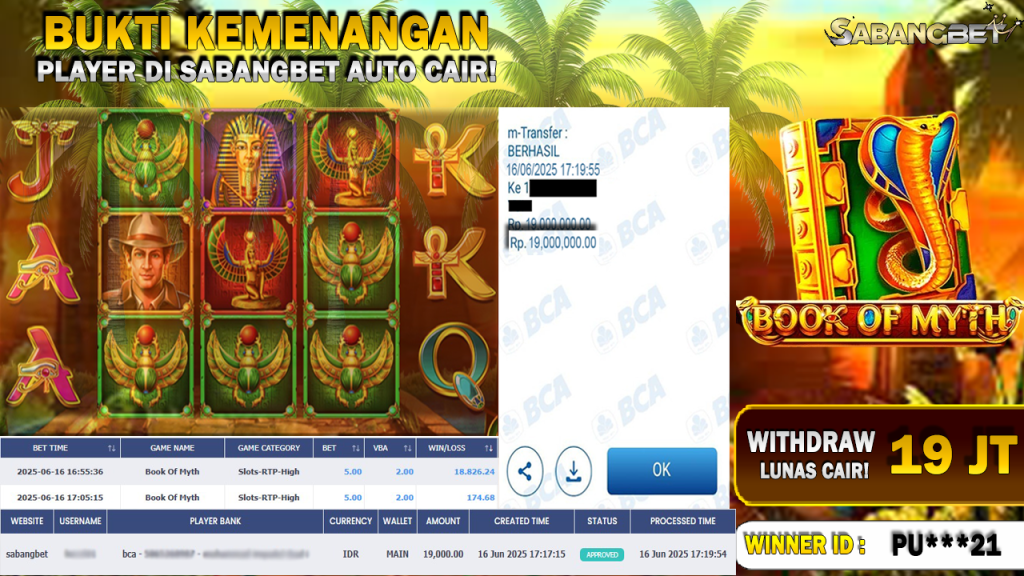 BUKTI KEMENANGAN 16 JUNI 2025 DI GAME BOOK OF MYTH WD 19 JUTA