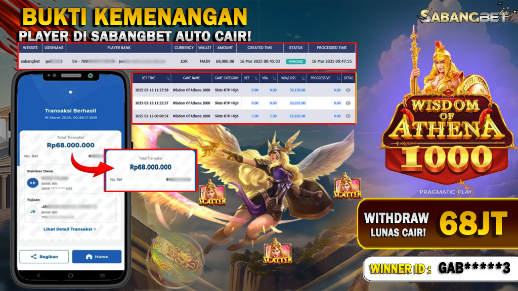 BUKTI KEMENANGAN 16 MARET 2025 DI GAME WISDOM OF ATHENA 1000 WD 68 JUTA