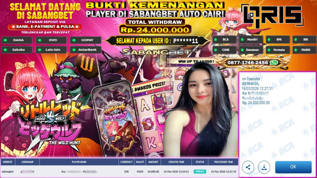 BUKTI KEMENANGAN 16 MARET 2026 DI GAME HOOD VS WOLF WD 24 JUTA