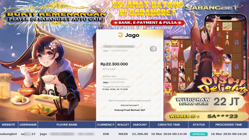HOME Agen Judi SABANGBET merupakan Agen Judi Slot Gacor dan slot online yang membayar semua kemenangan member hingga lunas. Setiap pembayaran pada situs kami dilakukan dengan cara transfer ke rekening tujuan yang sudah di daftarkan pada situs slot online kami, Pembayaran hanya dapat di proses jika rekening yang di daftarkan telah valid dan dapat di transfer. Semua kemenangan member yang mendapatkan hadiah jackpot terbesar akan kami posting agar semua pemain dapat melihat bandar situs terpercaya SABANGBET ini membayar semua kemenangan member hingga lunas. Setiap postingan yang kami posting akan kami lakukan sensor pada nomor rekening 4 digit dan nama rekening untuk menjaga privasi dan kerahasiaan member. Postingan Jackpot yang kami posting agar member atau pemain yang belum pernah bermain bisa melihat Agen Judi Bukan Kaleng Kaleng Seperti SABANGBET ini, Semua postingan jackpot yang kami posting dapat di lihat data keasliannya melalui nomor reff yang di tunjukan pada bank atau mbanking saat kita melakukan transfer.