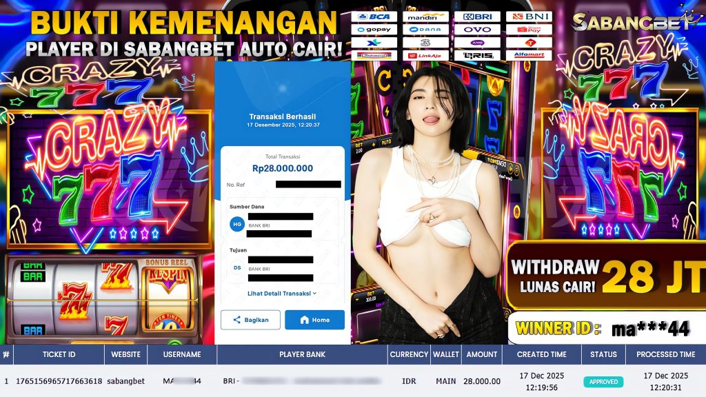 BUKTI KEMENANGAN 17 DESEMBER 2025 DI GAME THREE CRAZY777 WD 28 JUTA